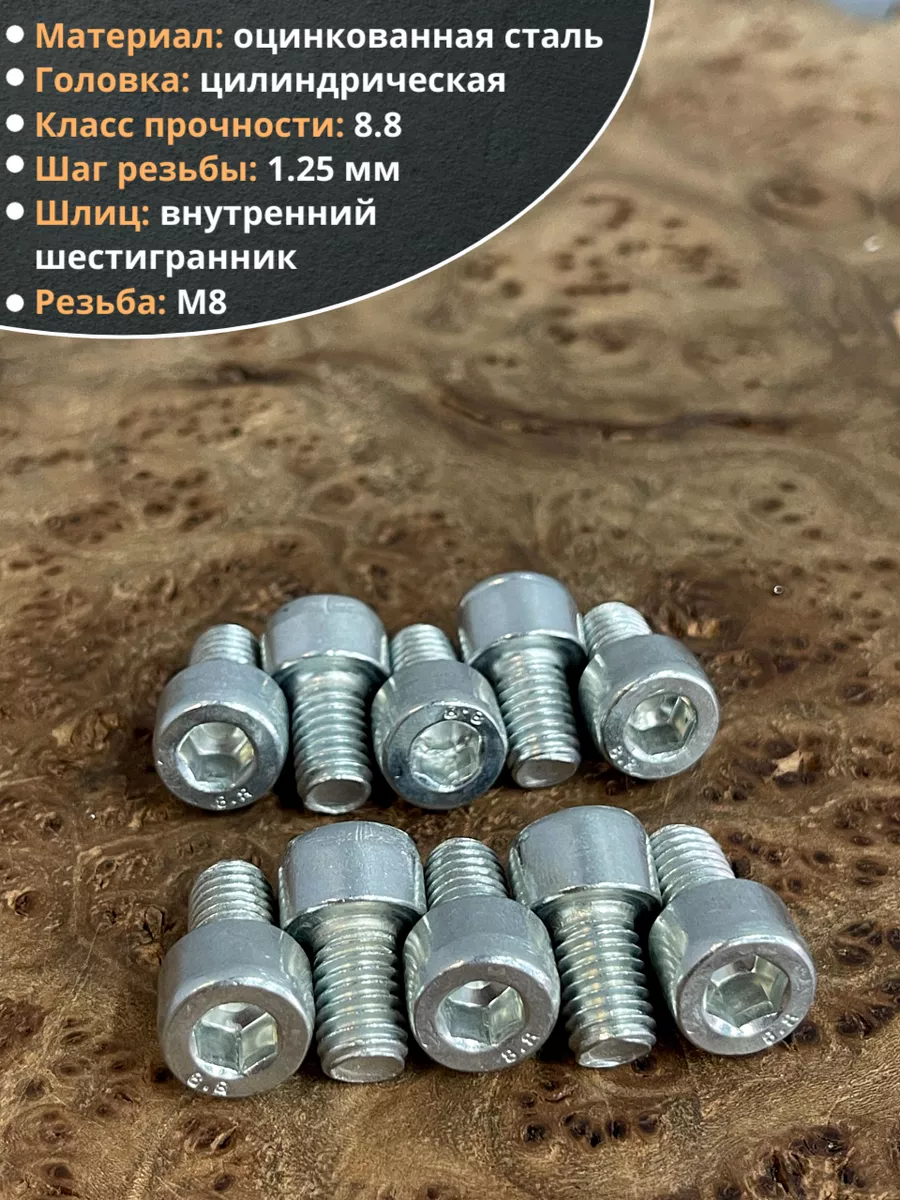 Винт под шестигранник ПР 8х16 мм ОЦ к.п.8.8 DIN912, 10 шт.