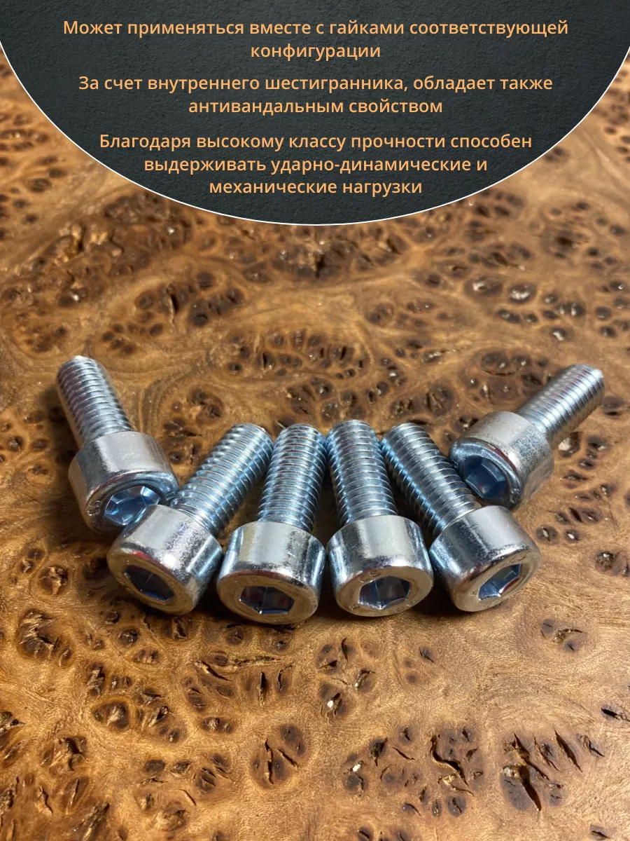 Винт под шестигранник ПР 8х20 мм ОЦ к.п.8.8 DIN912, 10 шт.