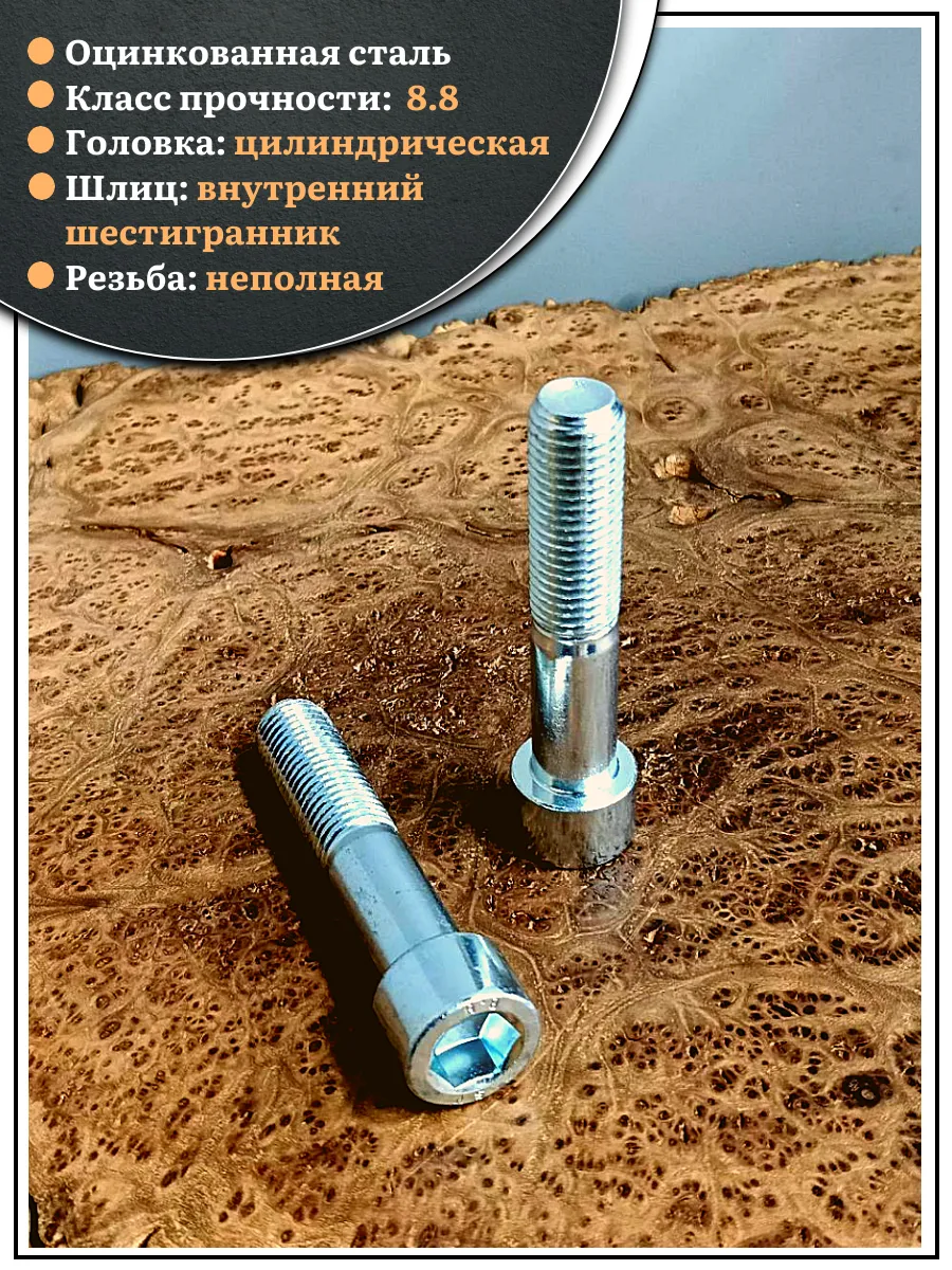 Винт под шестигранник НР 16х80 мм ОЦ к.п.8.8 DIN912, 2 шт.