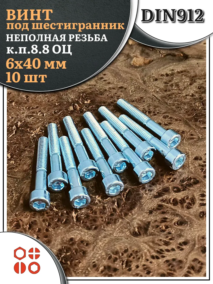 Винт под шестигранник НР 6х40 мм ОЦ к.п.8.8 DIN912, 10 шт.