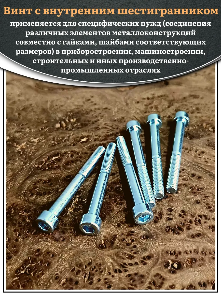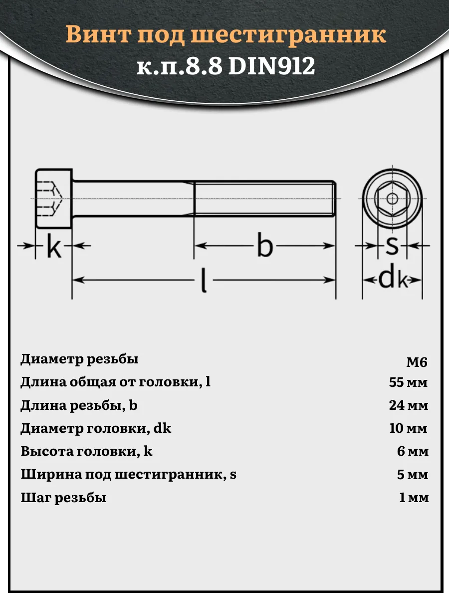 Винт под шестигранник НР 6х55 мм ОЦ к.п.8.8 DIN912, 10 шт.