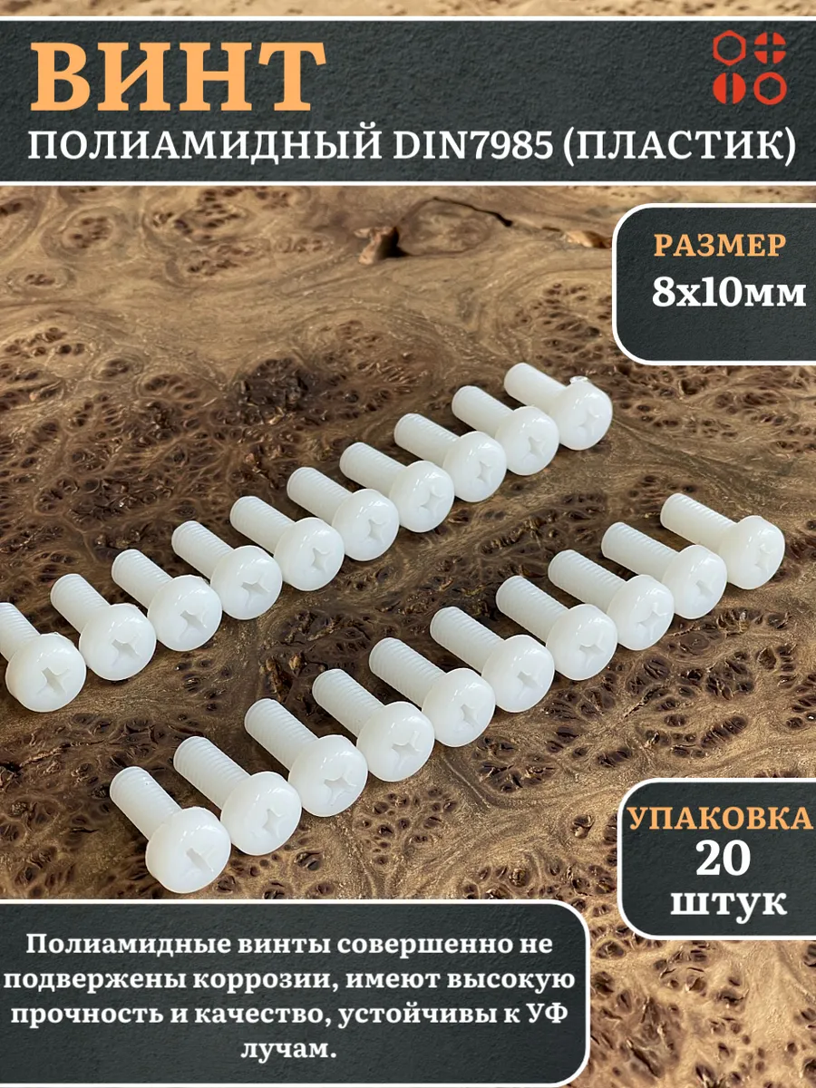 Винт полиамидный 8х10 мм DIN7985 (пластик), 20 шт.