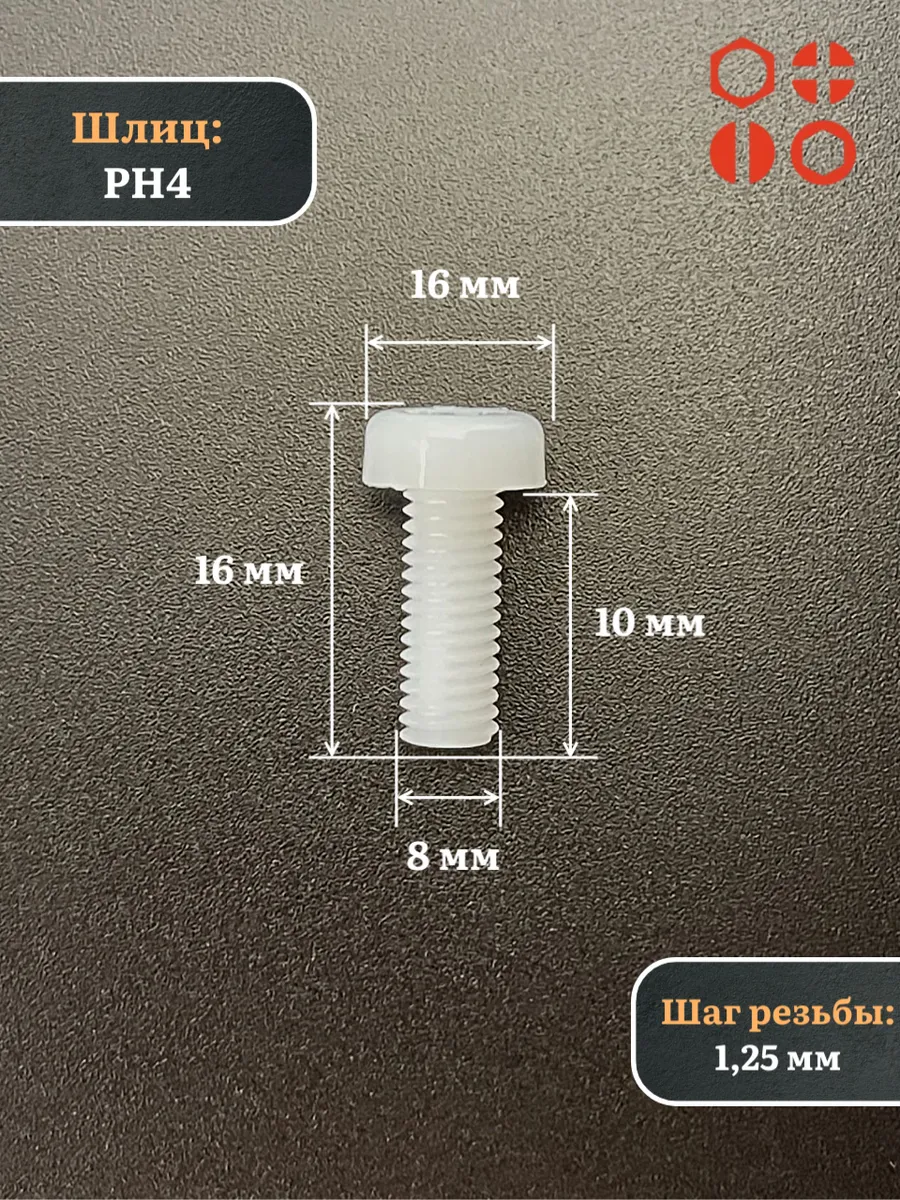 | Винт полиамидный 8х10 мм DIN7985 (пластик), 4 шт. | вп8107985ф4 | 1 шт. |