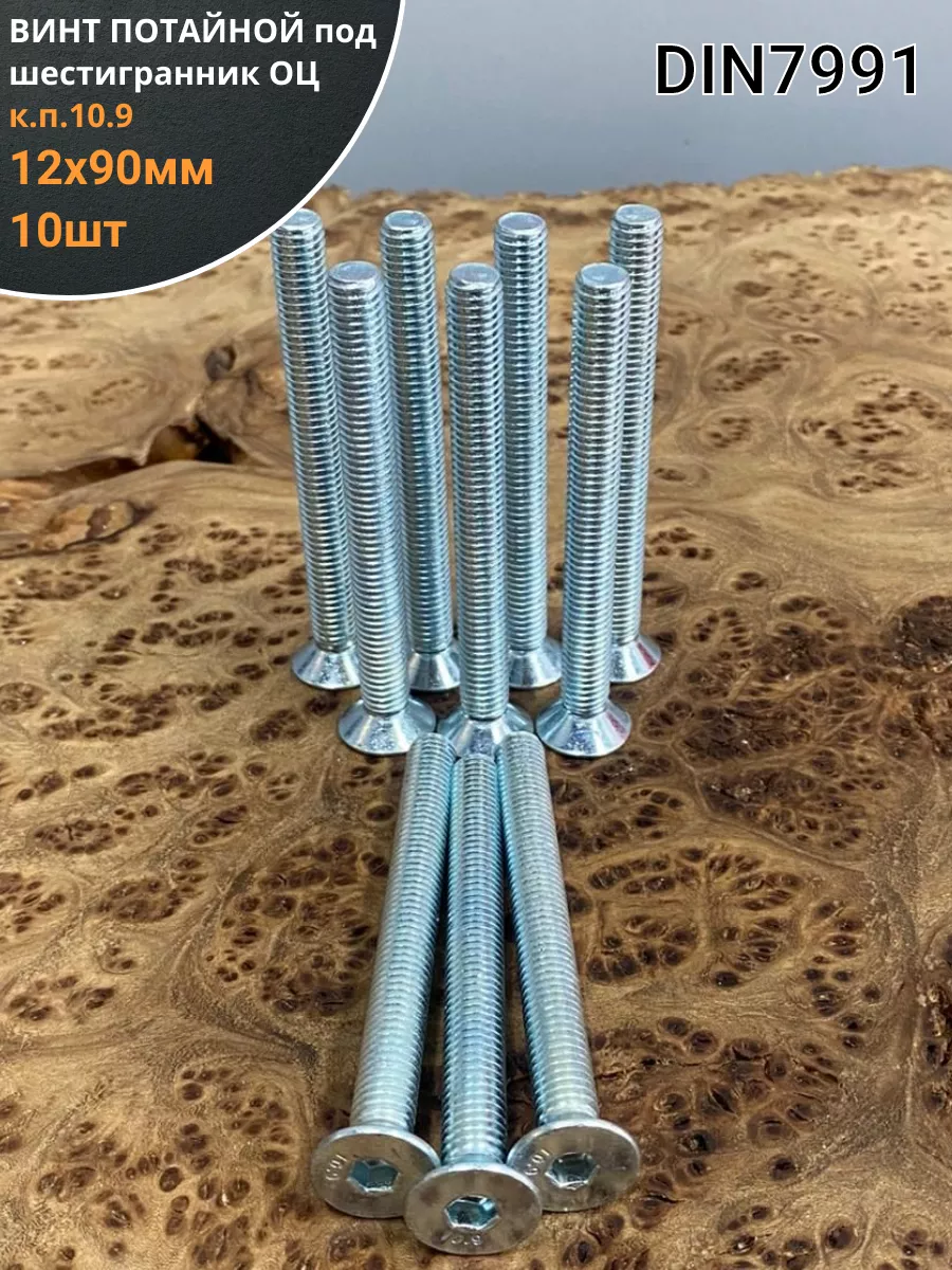 Винт потайной 12х90 под шестигранник ОЦ DIN7991к.п.10.9,10шт