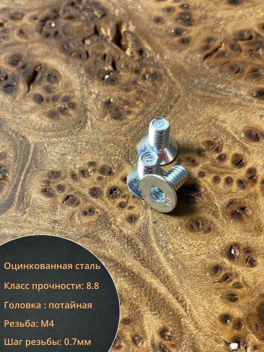 Винт потайной 4х8 под шестигранник ОЦ DIN7991,к.п.8.8 10 шт.