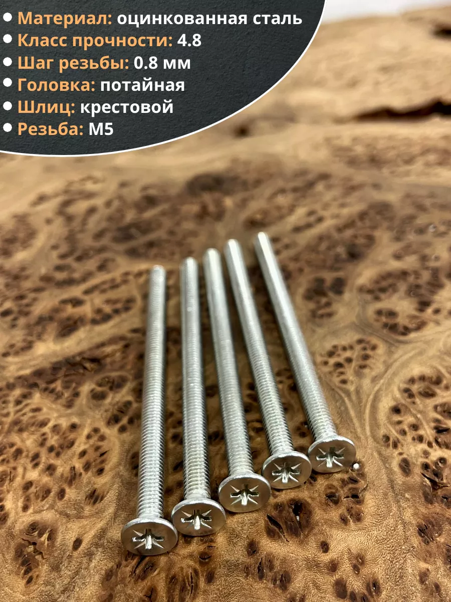 Винт потайной оцинкованный 5х90 DIN965, 10 шт.