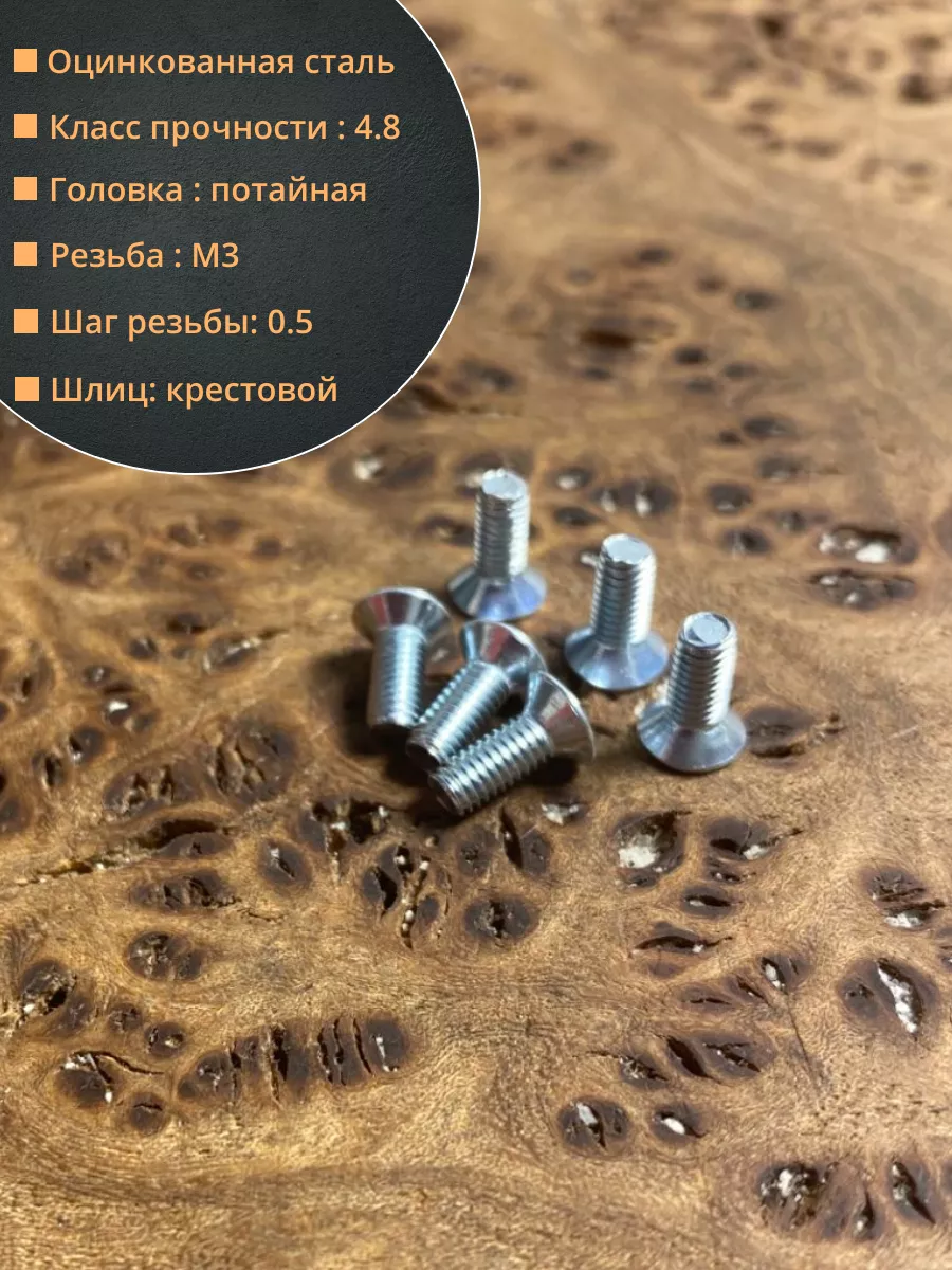 Винт потайной оцинкованный 3х8 DIN965, 50 шт.