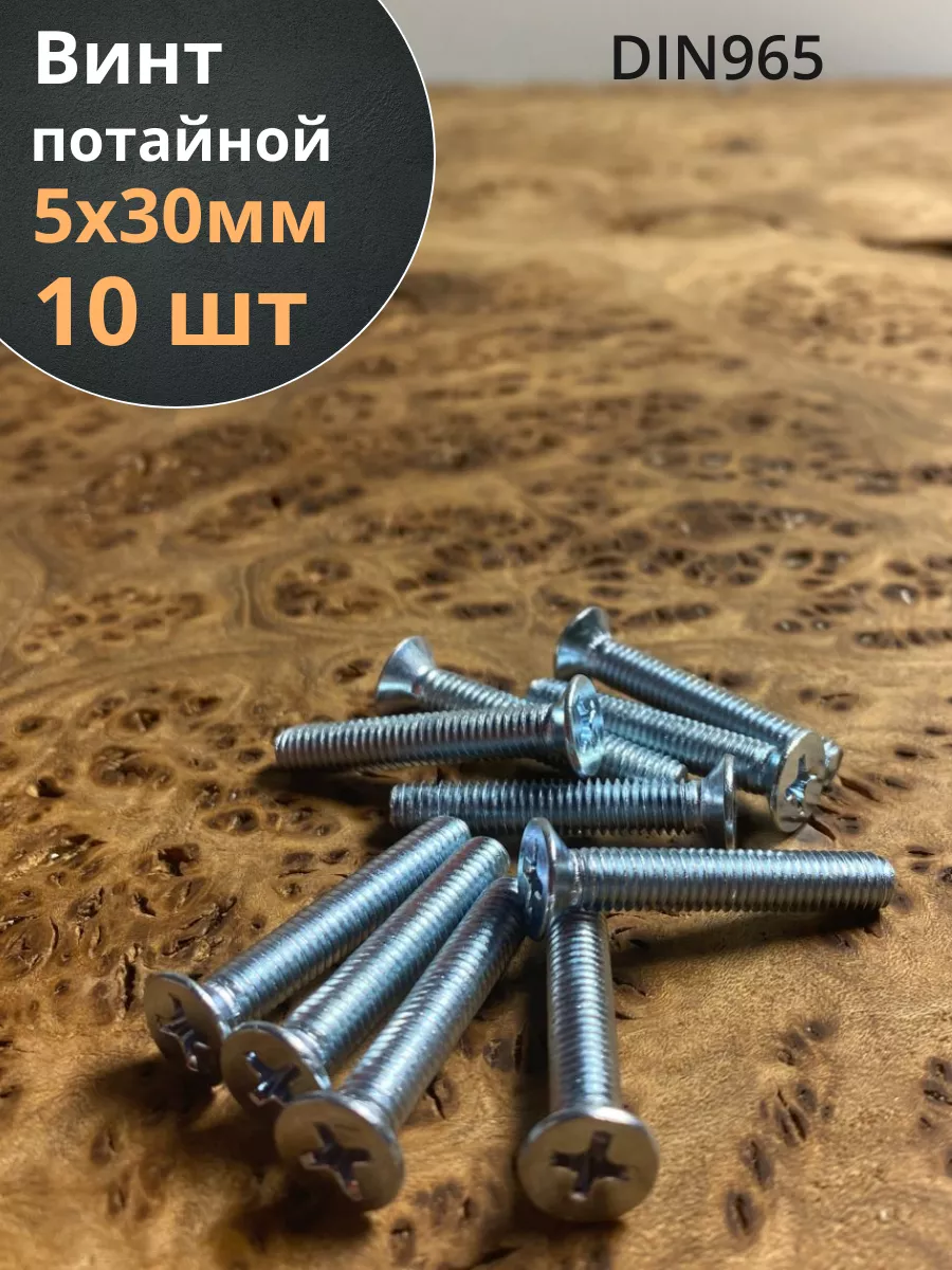 Винт потайной оцинкованный 5х30 DIN965, 10 шт.