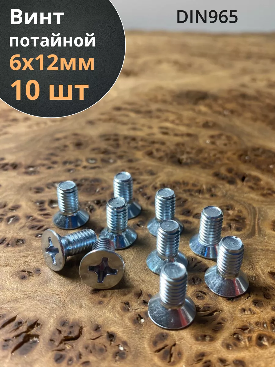 Винт потайной оцинкованный 6х12 DIN965, 10 шт.