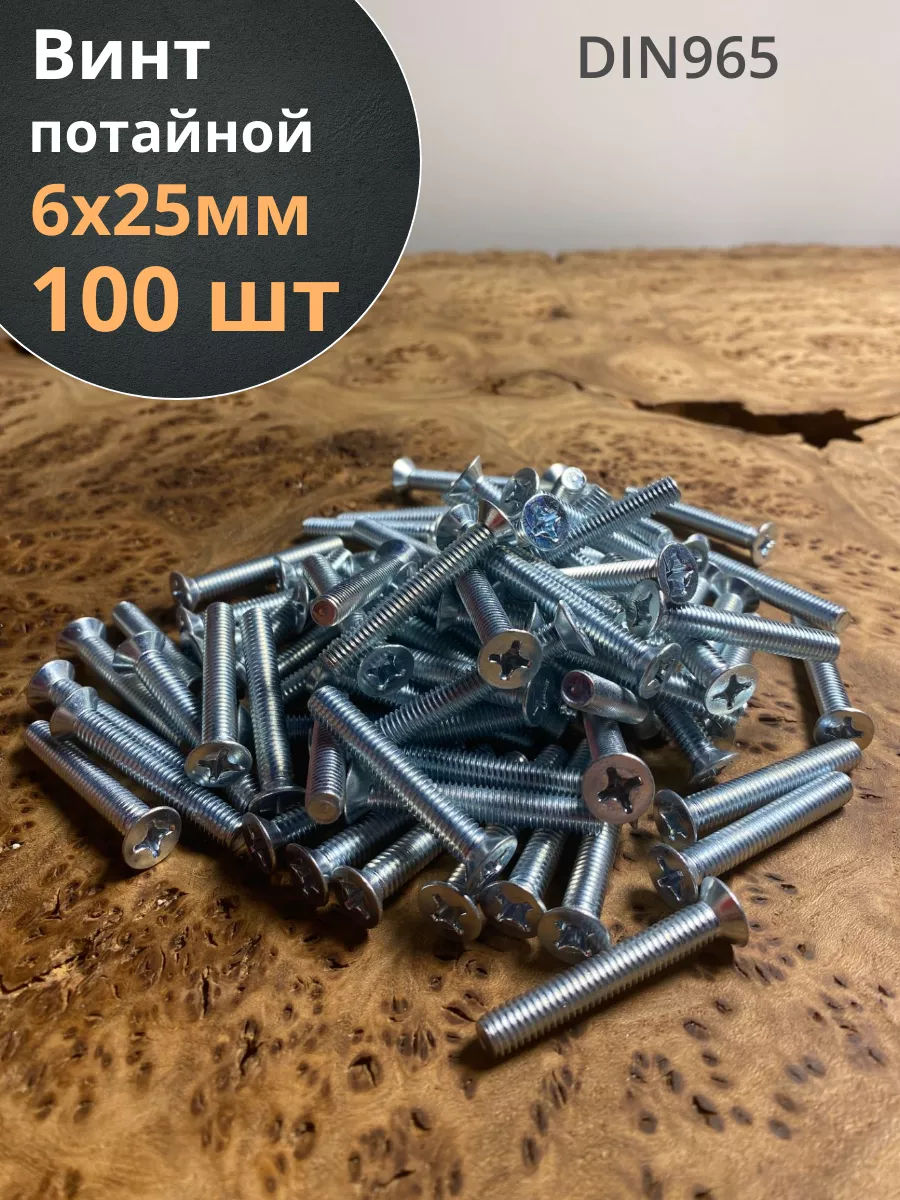 Винт потайной оцинкованный 6х25 DIN965, 100 шт.