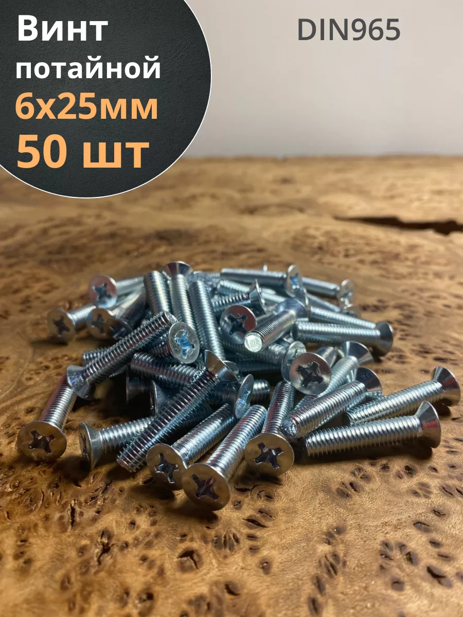 Винт потайной оцинкованный 6х25 DIN965, 50 шт.