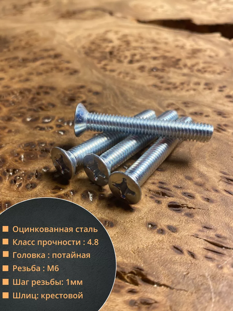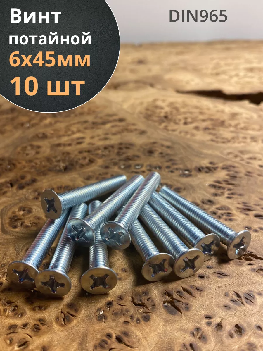 Винт потайной оцинкованный 6х45 DIN965, 10 шт.