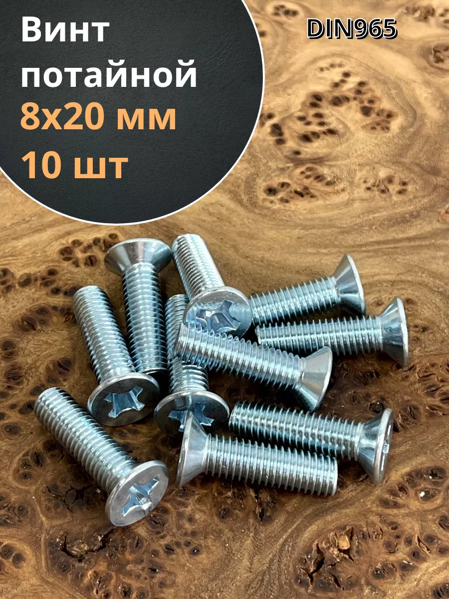 Винт потайной оцинкованный 8х20 DIN965, 10 шт.