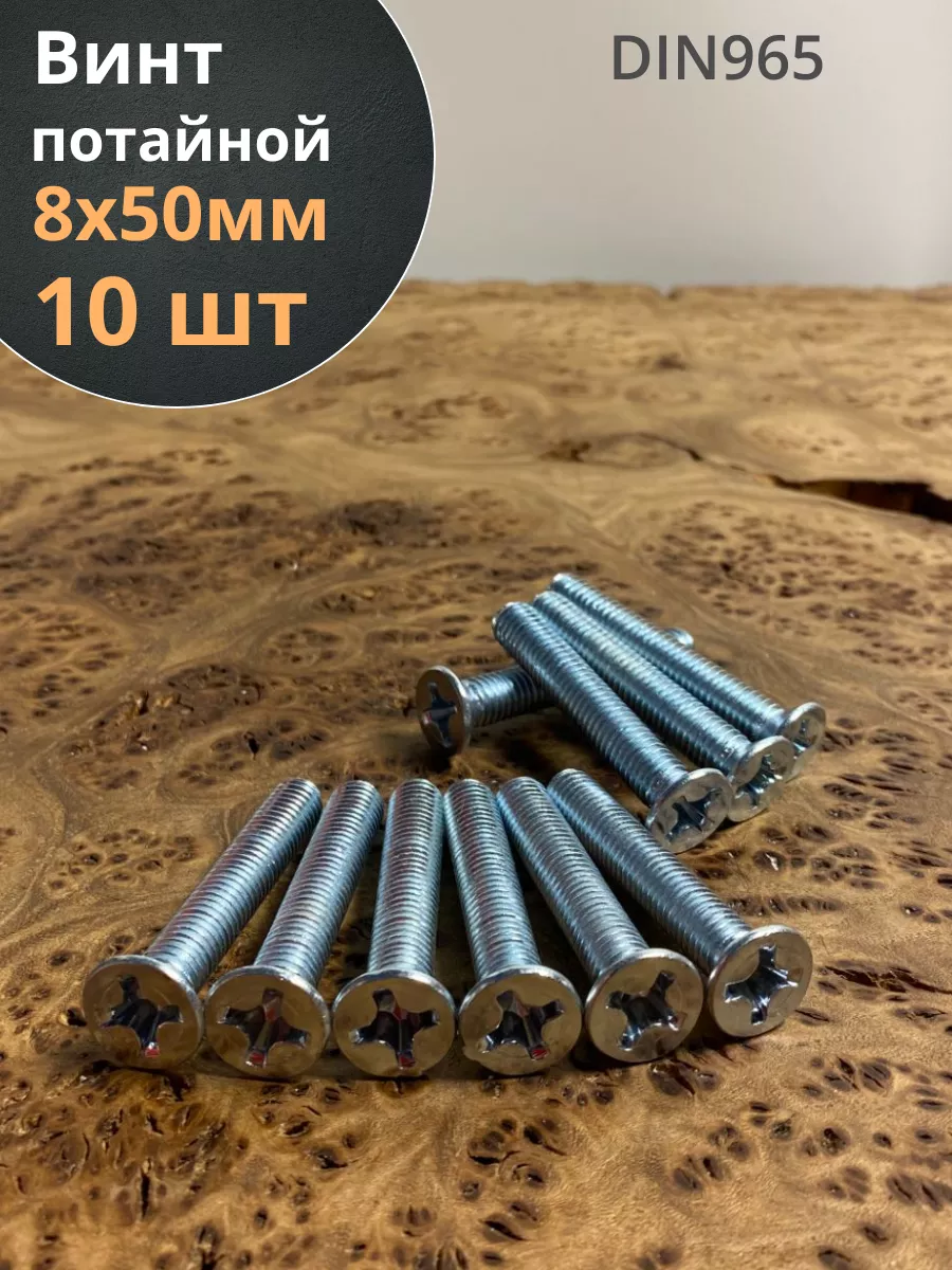 Винт потайной оцинкованный 8х50 DIN965, 10шт.