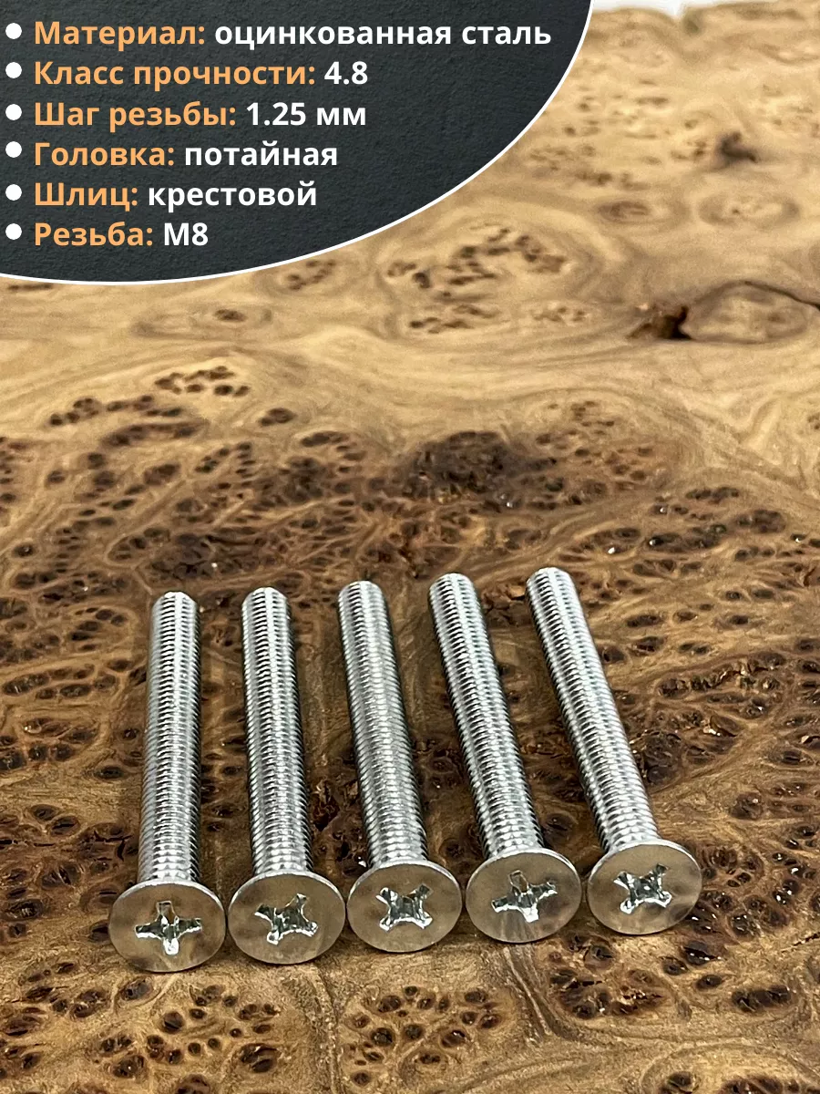 Винт потайной оцинкованный 8х70 DIN965, 50 шт.