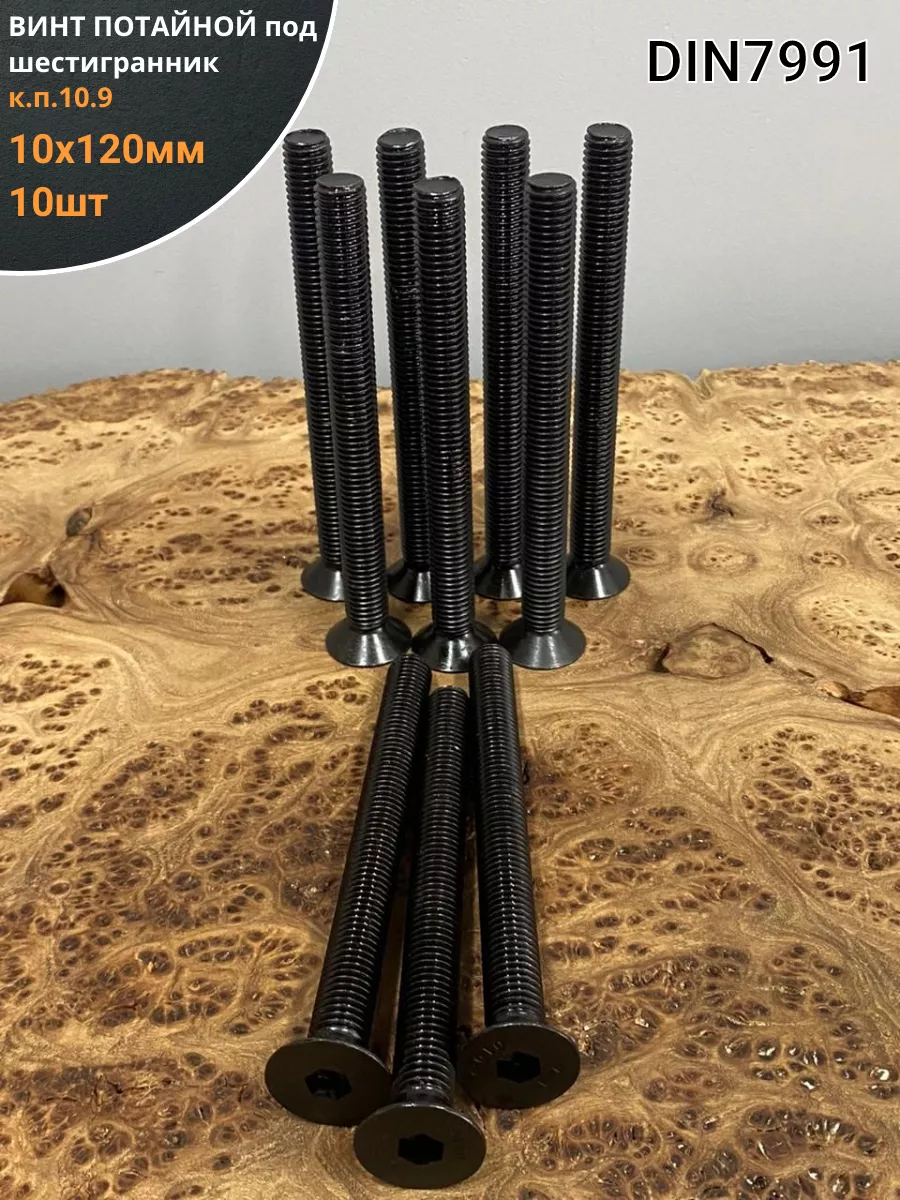 Винт потайной под шестигранник 10х120 DIN7991 к.п.10.9,10 шт