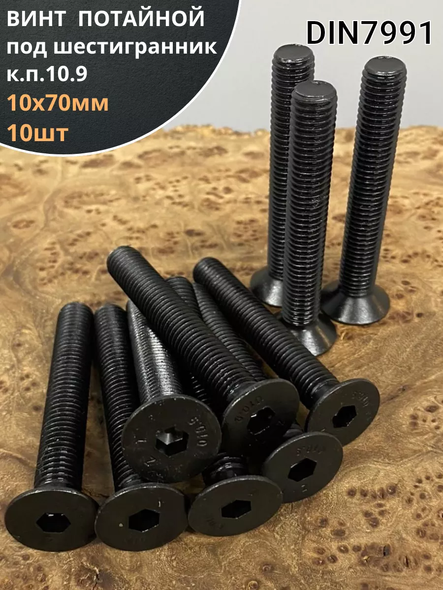Винт потайной под шестигранник 10х70 DIN7991 к.п.10.9,10 шт.