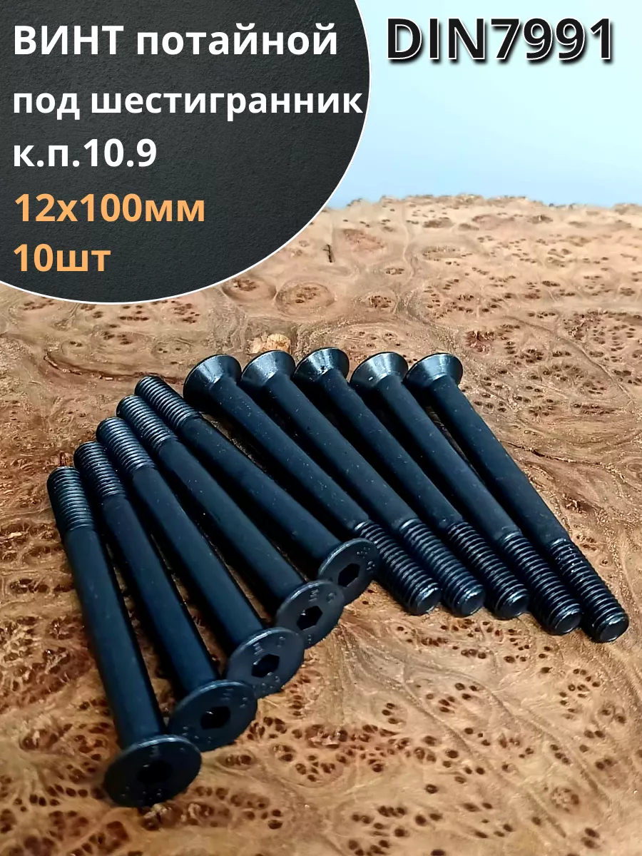 Винт потайной под шестигранник НР М12х100 DIN7991 к.п.10.9,10 шт