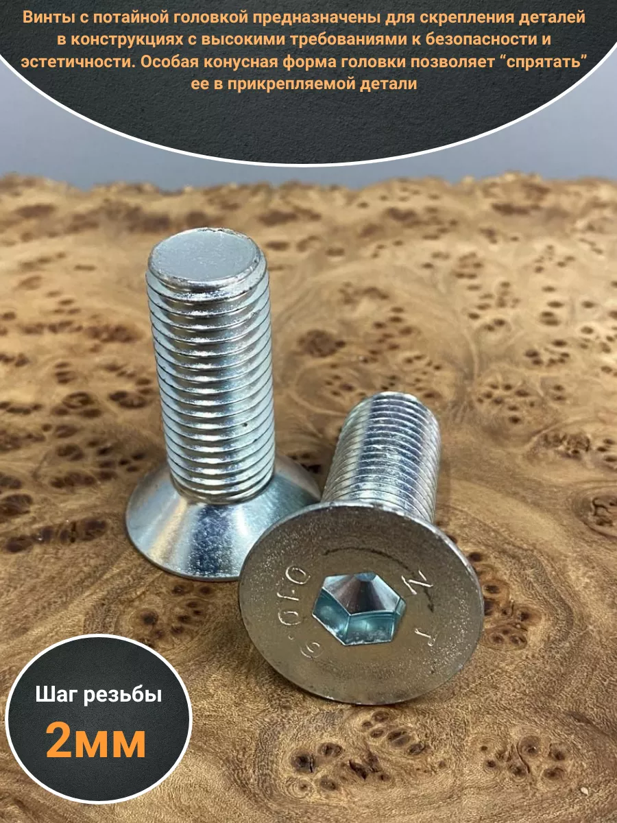 Винт потайной под шестигран 16х45 DIN7991 ОЦ к.п.10.9, 4шт