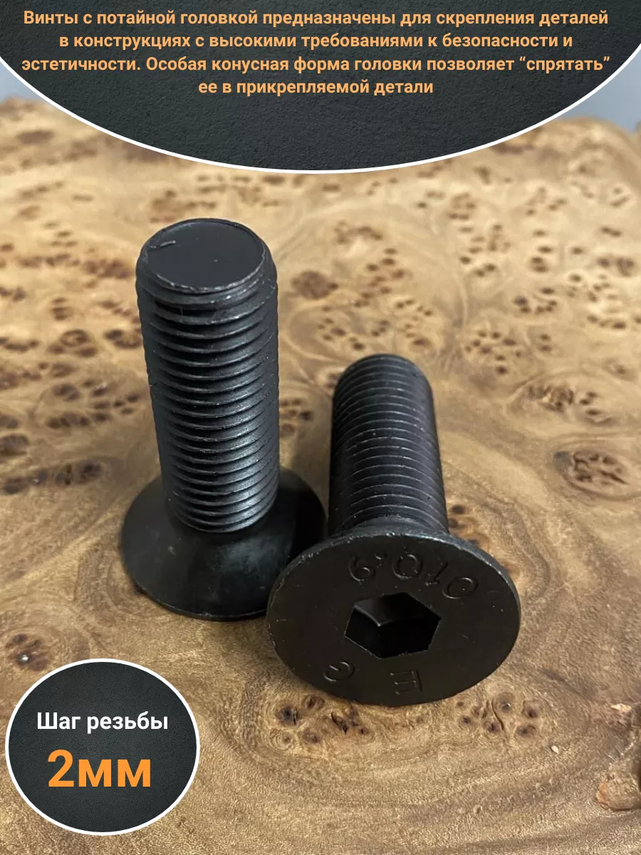 Винт потайной под шестигранник 16х60 DIN7991 к.п.10.9, 4шт