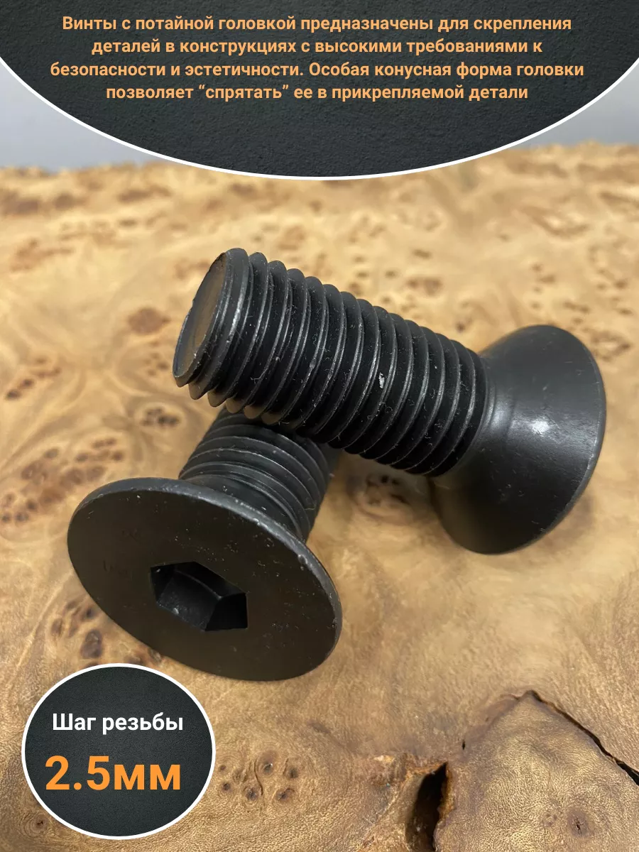 Винты с потайной головкой предназначены для скрепления деталей в конструкциях с высокими требованиями к безопасности и эстетичности. Особая конусная форма головки позволяет “спрятать” ее в прикрепляемой детали. При этом поверхность головки находится в одной плоскости с поверхностью детали. Крепёж с такими свойствами высоко востребован в машино-, автомобилестроении, при сборке бытовой техники, в приборостроении. Конструкция винта DIN 7991 включает стержень с метрической резьбой, потайную головку и шестигранное углубление под ключ для передачи крепежному изделию крутящего момента. Шестигранный внутренний диаметр углубления дает возможность подавать гораздо большее усилие при установке в контакте с ключом или битой. Винты DIN 7991 могут изготавливаться из углеродистых и легированных сталей