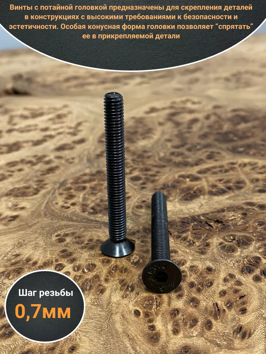 Винт потайной под шестигранник 4х35 DIN7991 к.п.10.9, 10шт.