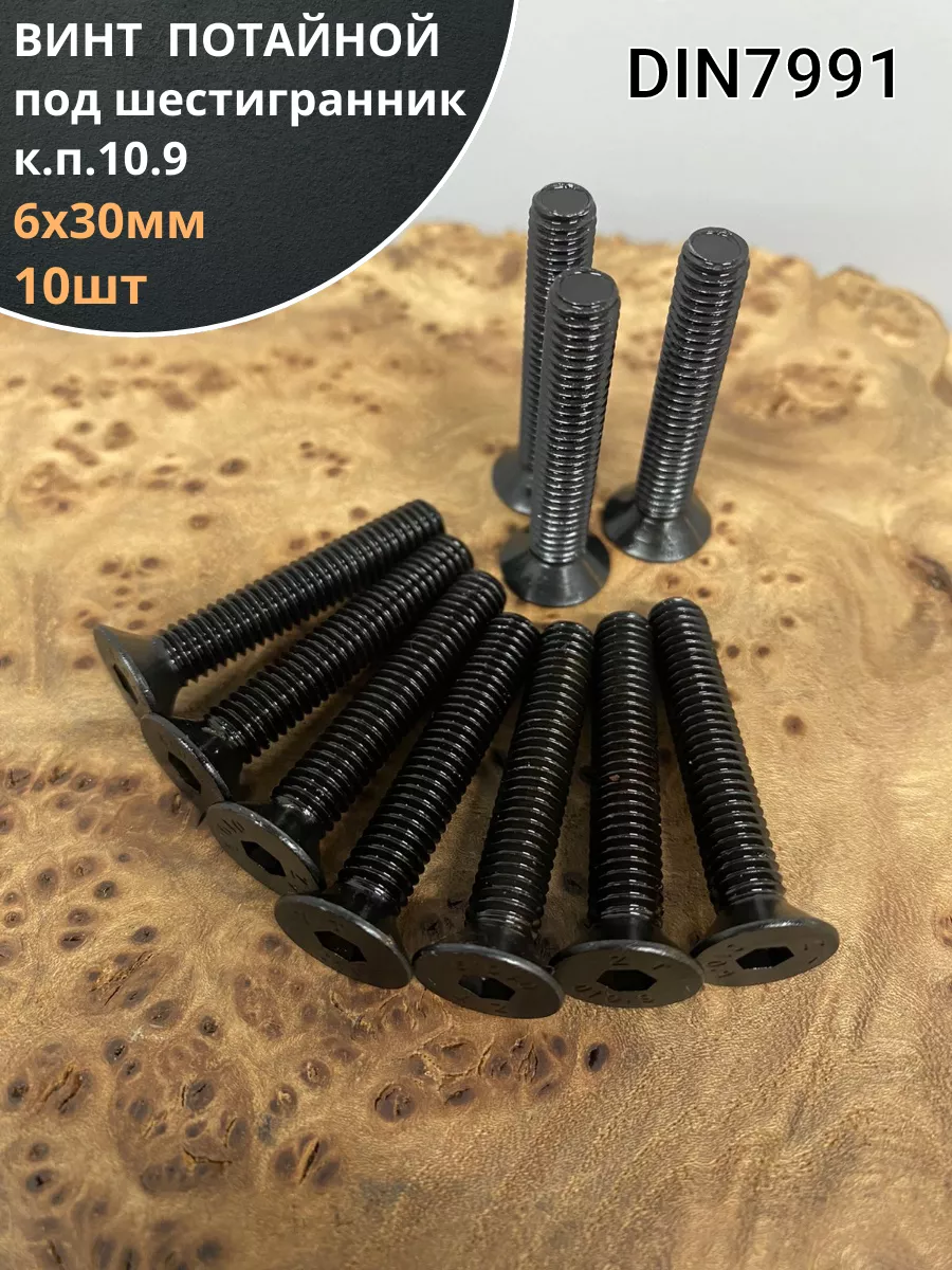 Винт потайной под шестигранник 6х30 DIN7991 к.п.10.9, 10 шт.