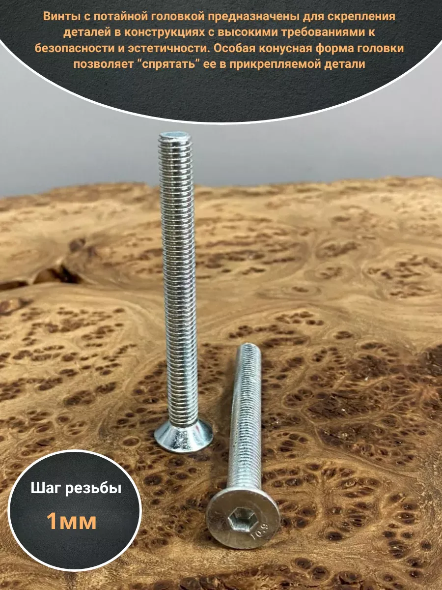 Винт потайной под шестигранник 6х70 DIN7991 к.п.10.9, 10 шт.