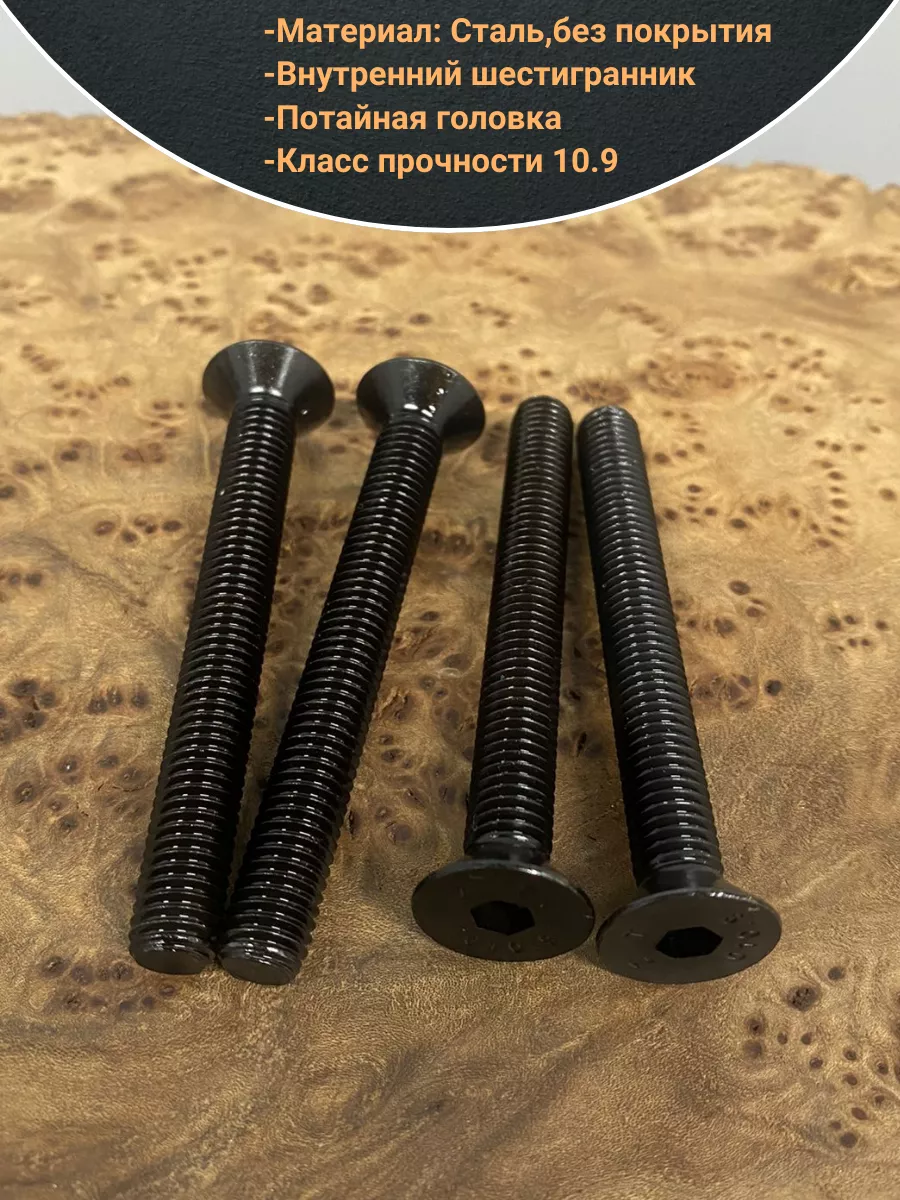 Винт потайной под шестигранник М8х60 DIN7991 к.п.10.9, 10 шт.