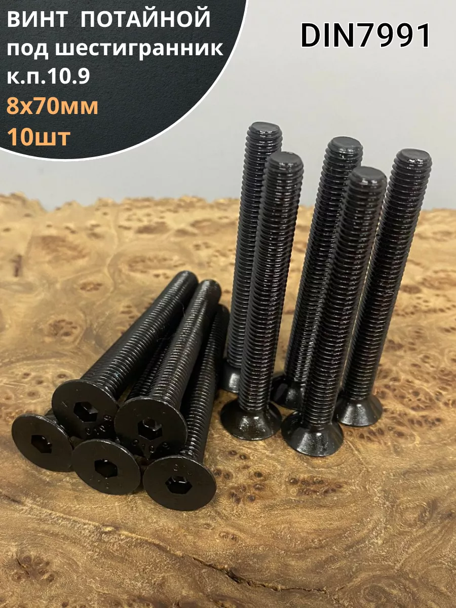 Винт потайной под шестигранник М8х70 DIN7991 к.п.10.9, 10 шт.