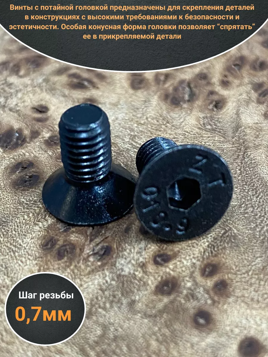 Винт потайной под шестигранник 4х6 DIN7991 к.п.10.9, 10шт.