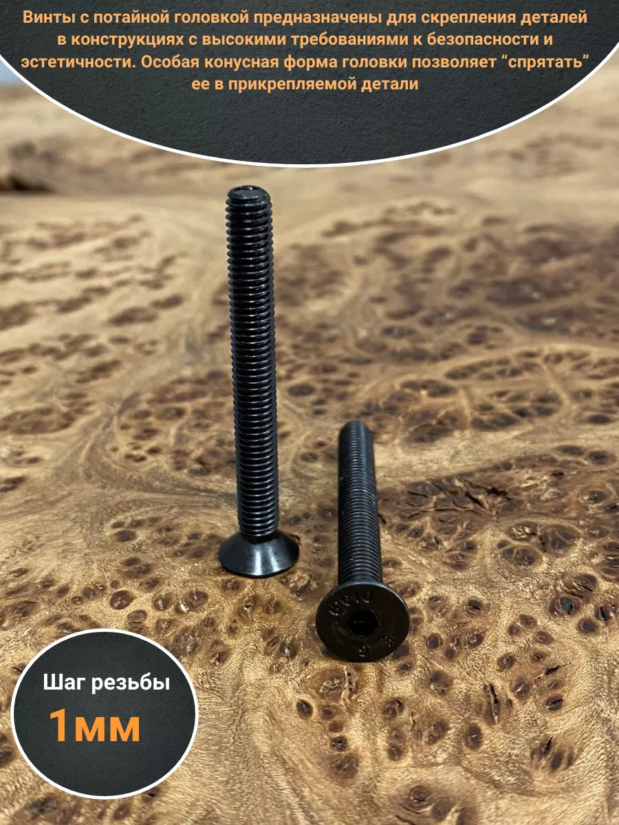 Винт потайной под шестигранник 6х45 DIN7991 к.п.10.9,10 шт.