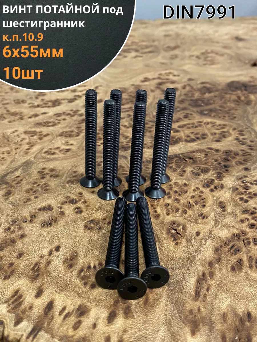Винт потайной под шестигранник 6х55 DIN7991 к.п.10.9, 10 шт.
