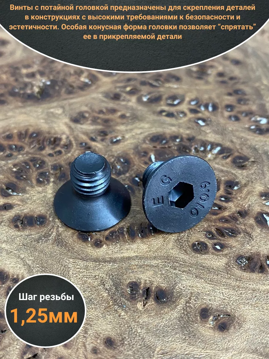 Винт потайной под шестигранник 8х12 DIN7991 к.п.10.9, 10 шт.