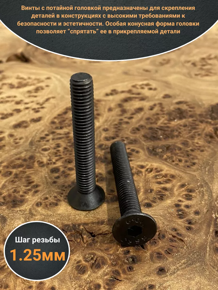 Винт потайной под шестигранник 8х45 DIN7991 к.п.10.9, 10 шт.