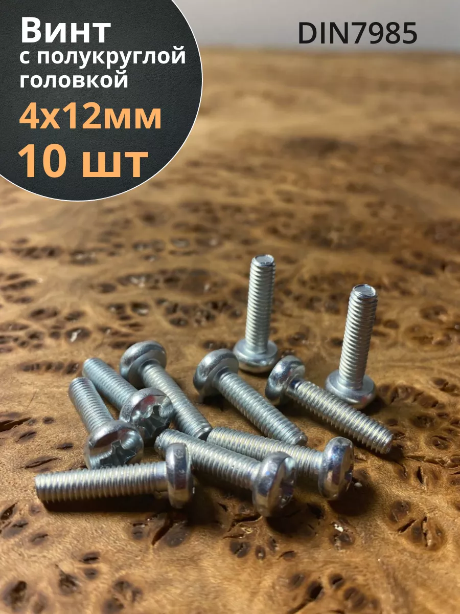 Винт с полукруглой головкой М4х12 ОЦ DIN7985, 10 шт.