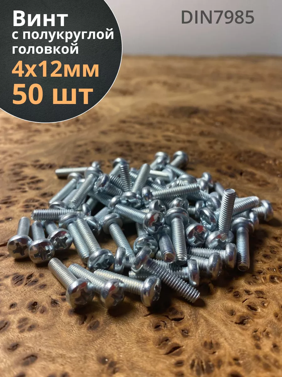 Винт с полукруглой головкой М4х12 ОЦ DIN7985 , 50 шт.