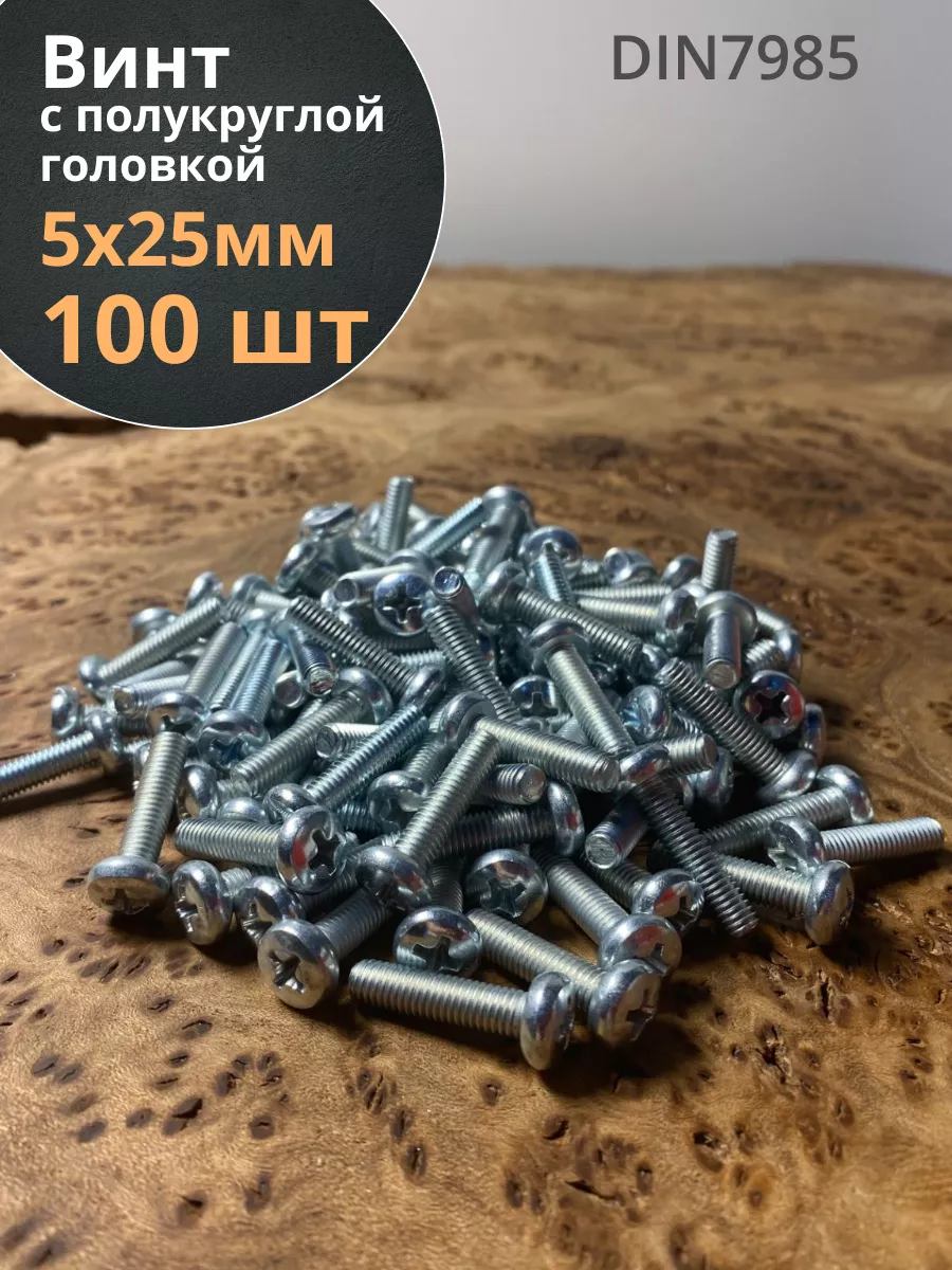 Винт с полукруглой головкой М5х25 ОЦ DIN7985, 100 шт.