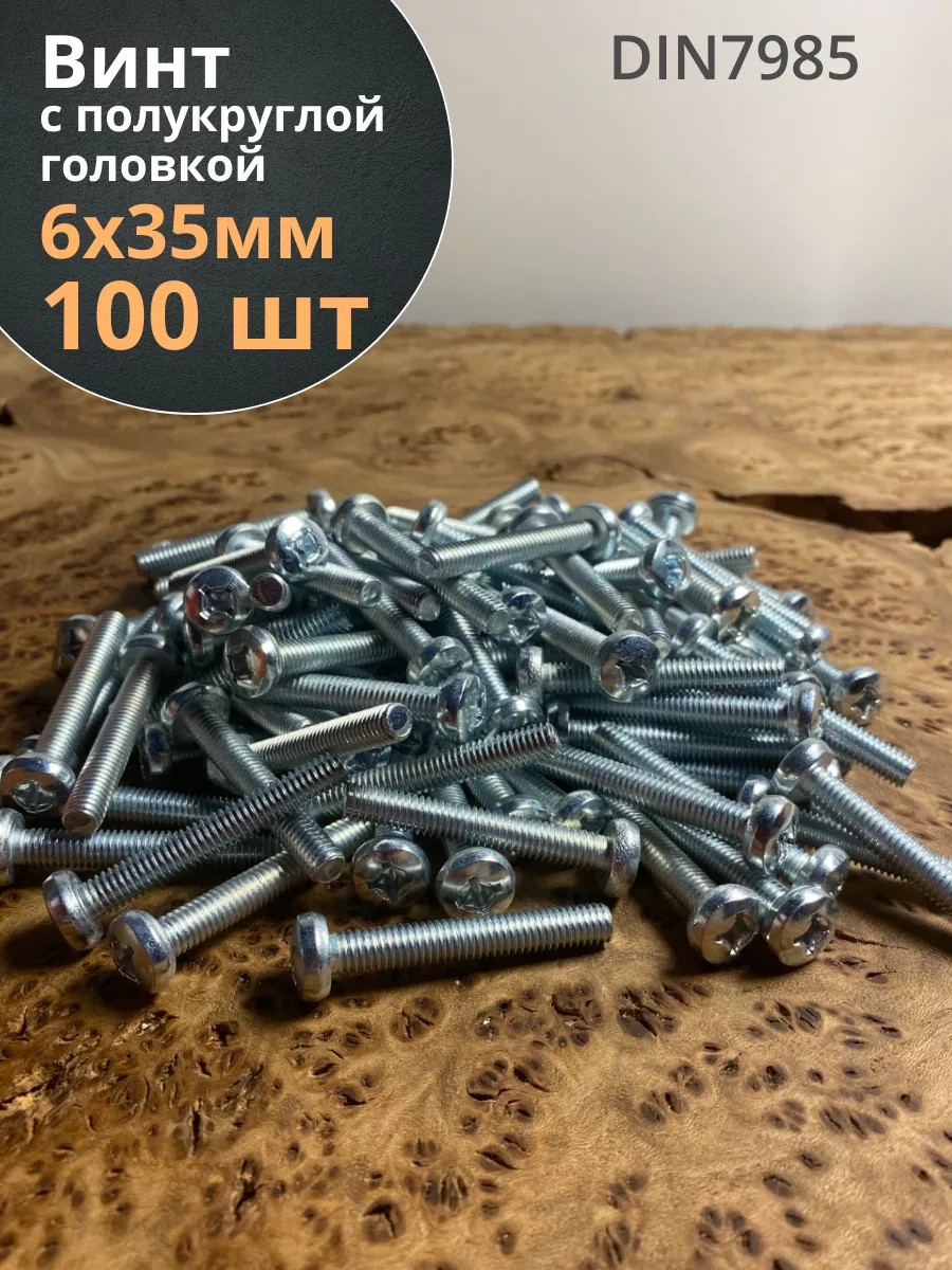 Винт с полукруглой головкой М6х35 ОЦ DIN7985, 100 шт.