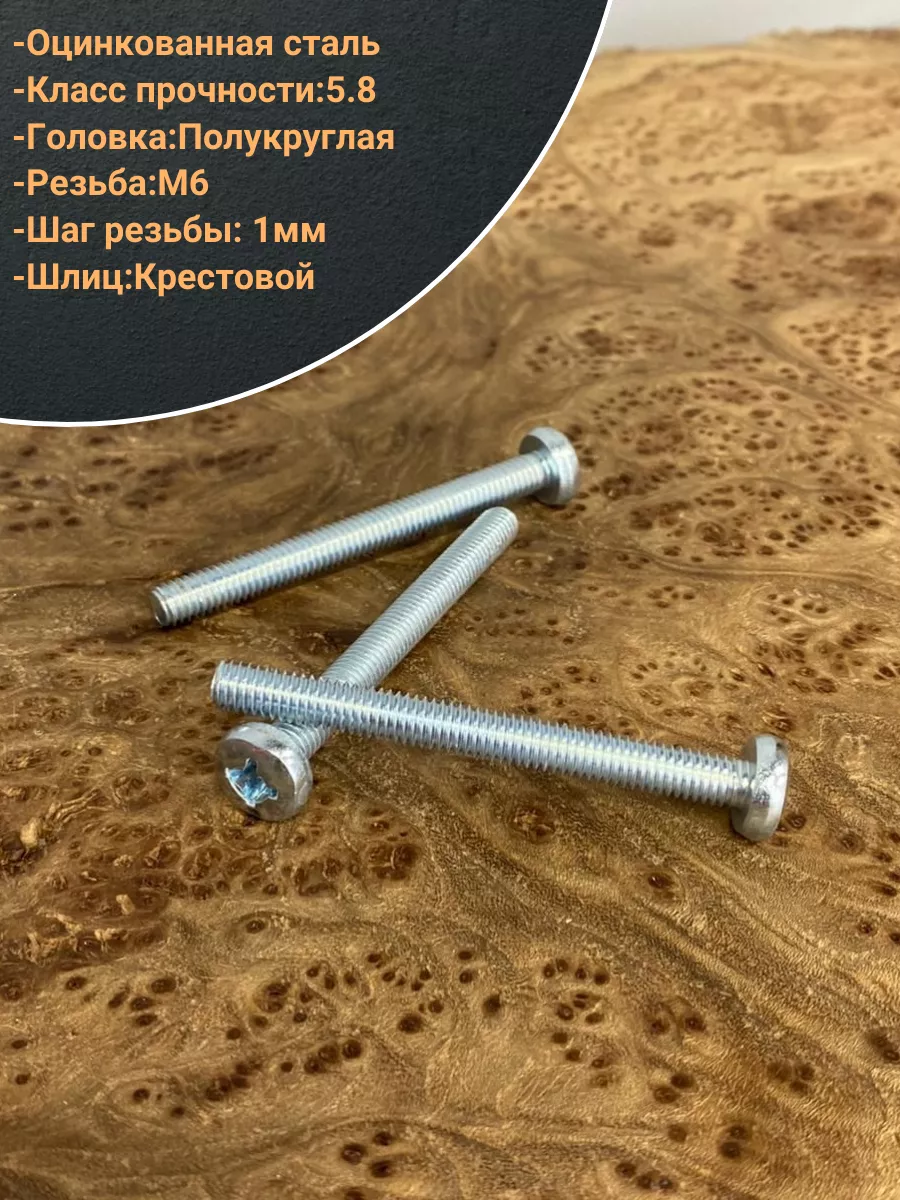 Винт с полукруглой головкой М6х60 ОЦ DIN7985, 10 шт.