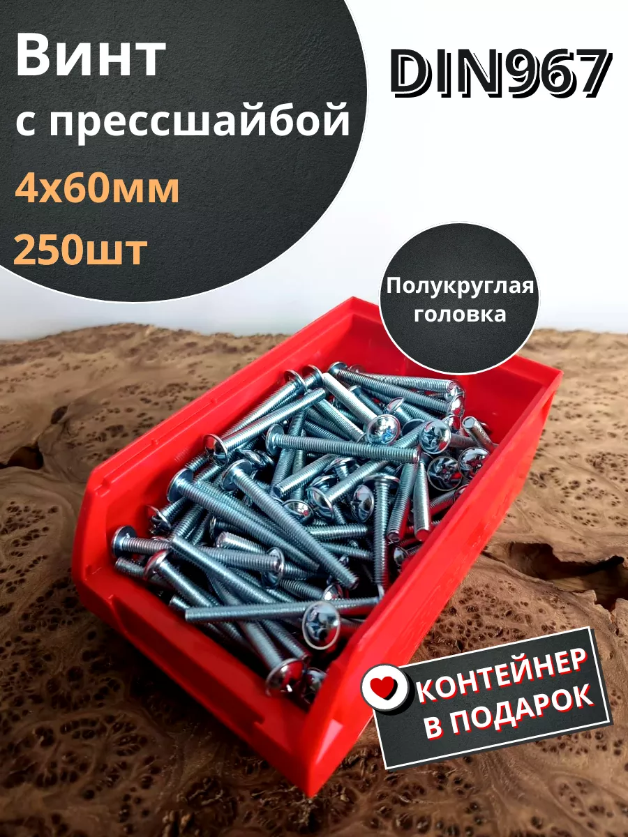 Винт с прессшайбой М4х60 DIN967, 250 шт. в контейнере