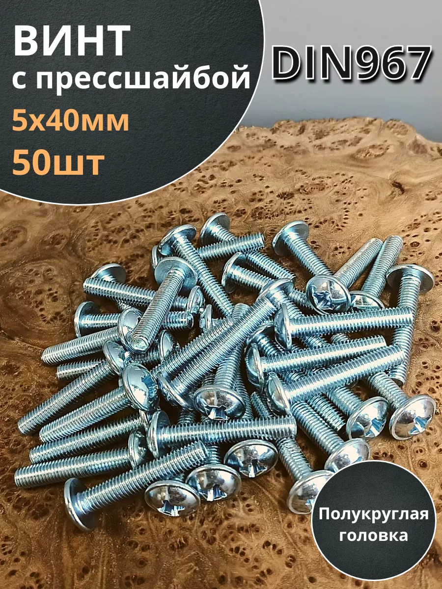 Винт с прессшайбой М5х40 мебельный DIN967, 50 шт.