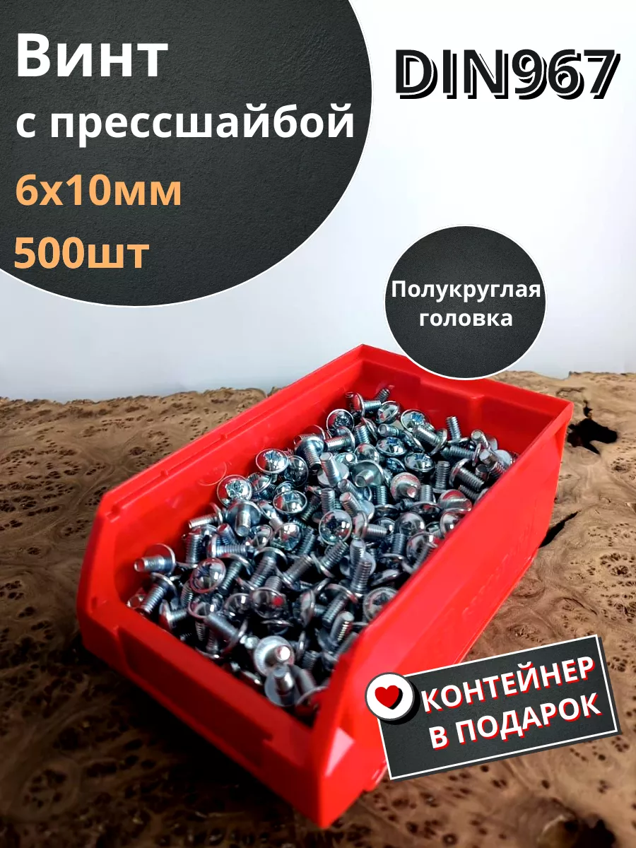 Винт с прессшайбой М6х10 DIN967, 500 шт. в контейнере