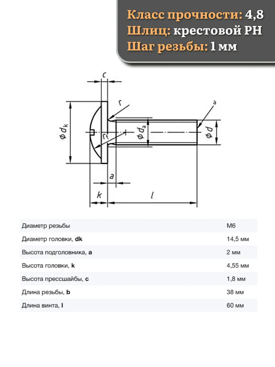Винт мебельный с полукруглой головкой и прессшайбой, применяется при строительных работах, в машиностроении. Используется для монтажа из металла, пластика и древесины твердых пород. Монтаж производится в заранее подготовленное отверстие с применением гайки соответствующего диаметра, или применятся для вкручивания в различные резьбовые отверстия при монтаже.