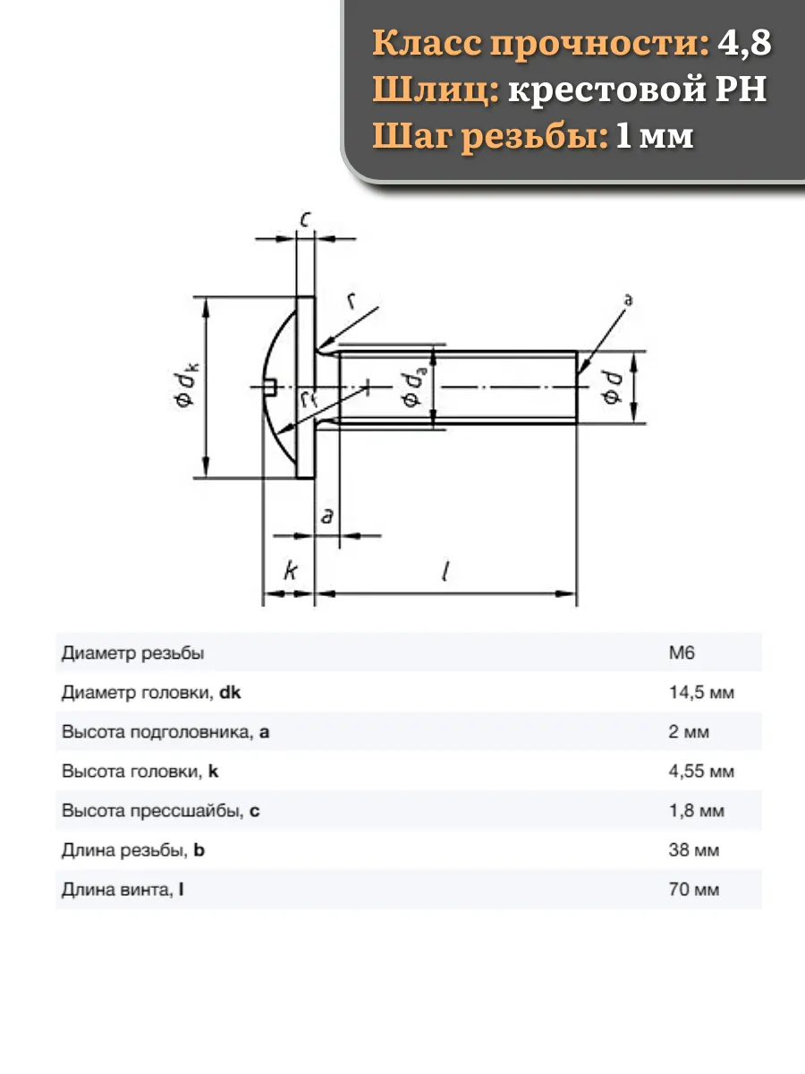 Винт с прессшайбой М6х70 DIN967 с гайкой фланец, 20 шт.