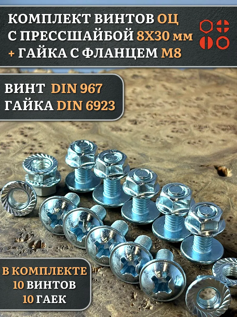 Винт с прессшайбой М8х30 DIN967 с гайкой фланец, 10 шт.