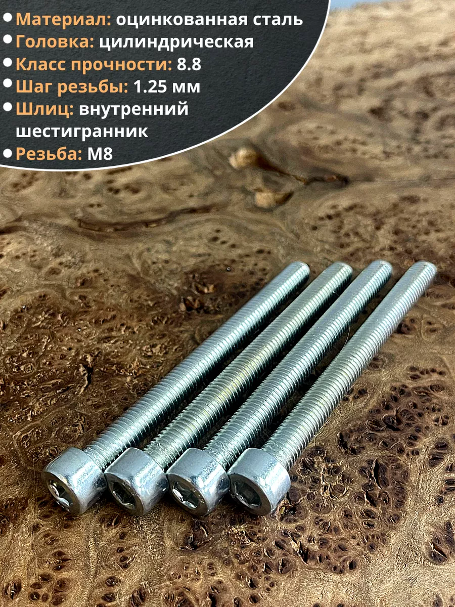 Винт под шестигранник ПР 8х100 мм ОЦ к.п.8.8 DIN912, 10 шт.
