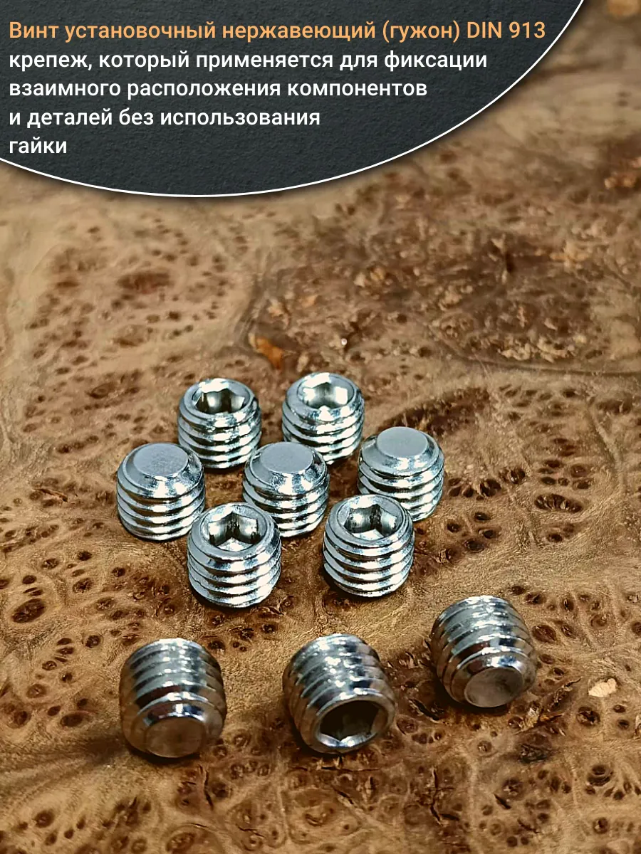Винт установочный нержавеющий М12х10 DIN913 (гужон), 10 шт.