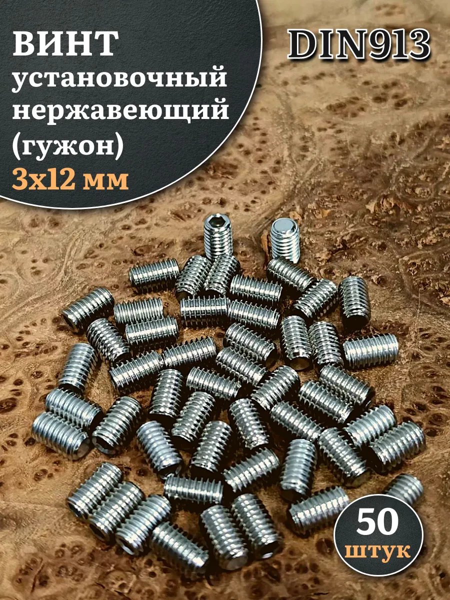 Винт установочный нержавеющий М3х12 DIN913 (гужон), 50 шт.