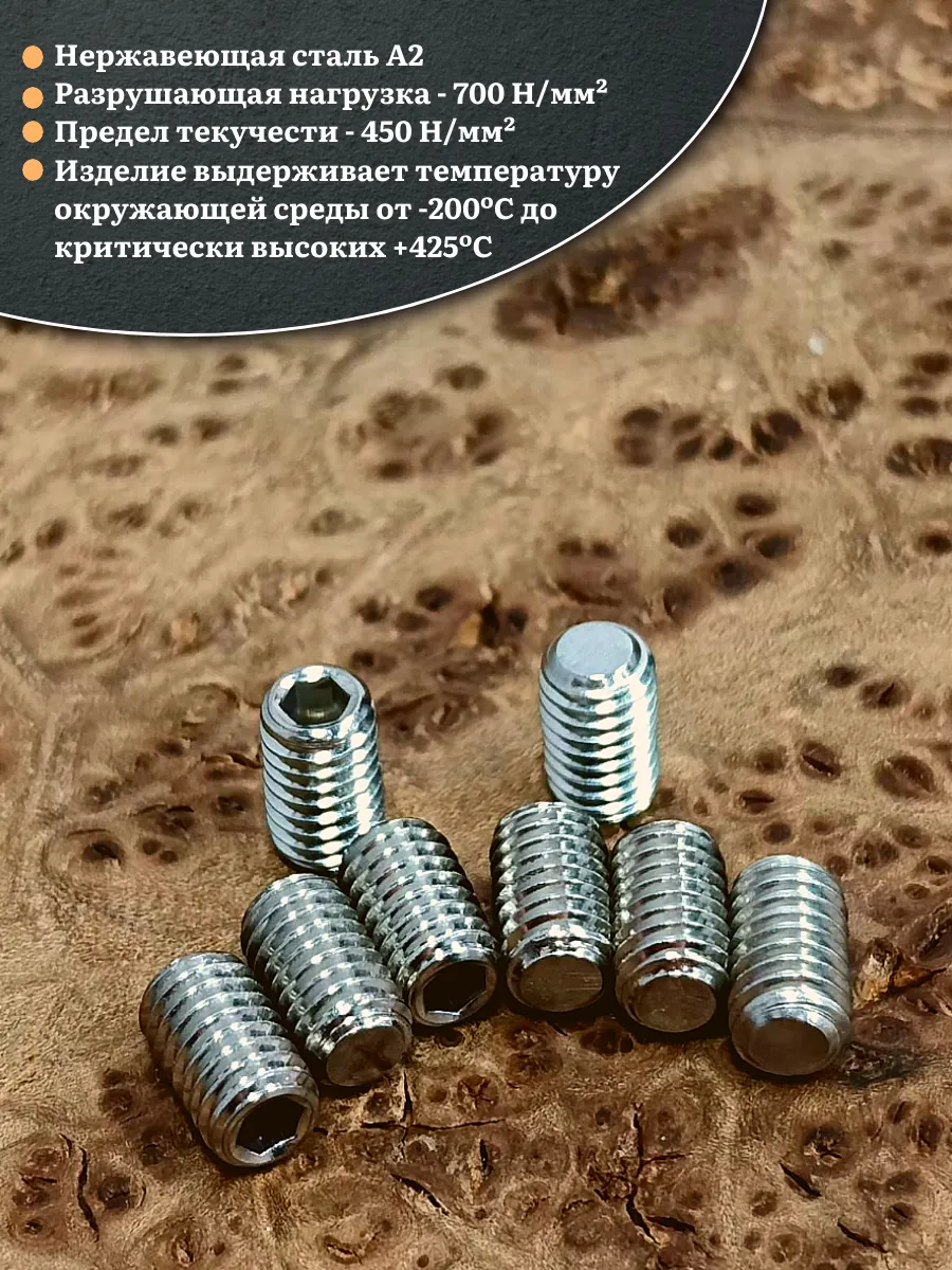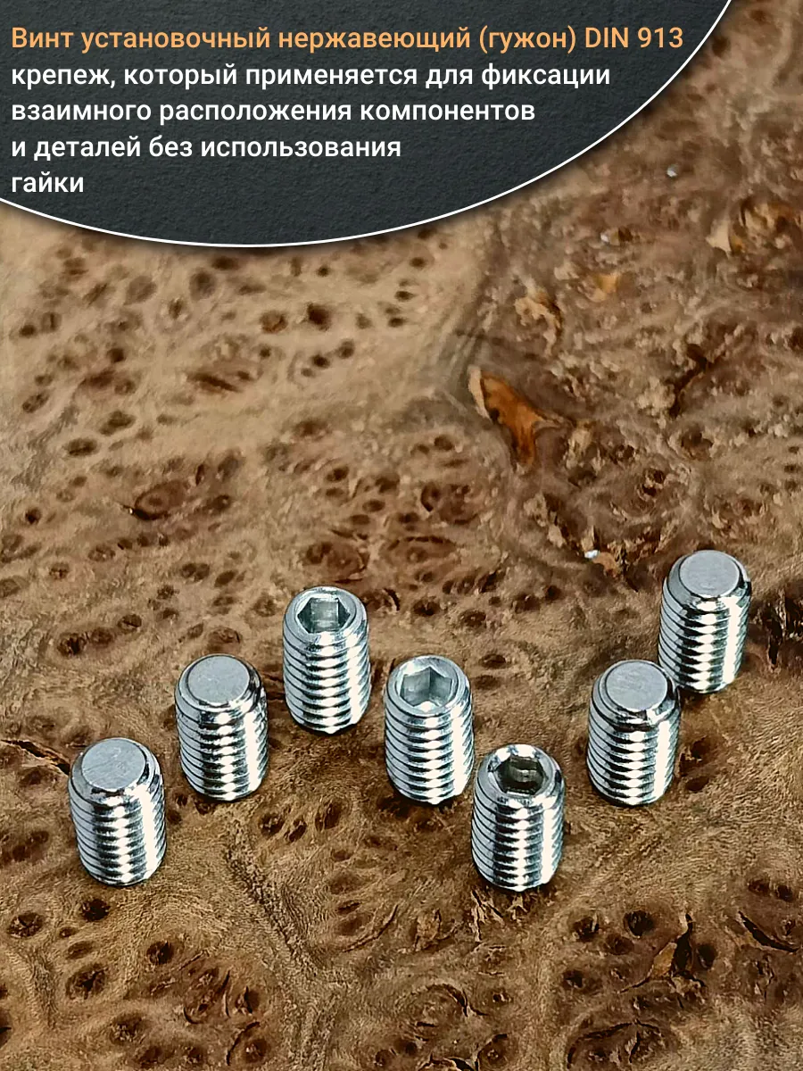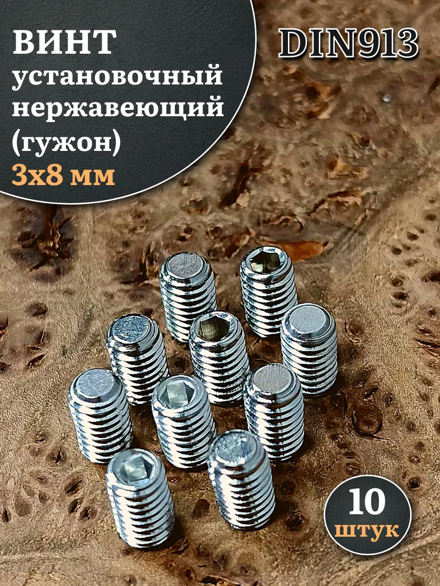 Винт установочный нержавеющий М3х8 DIN913 (гужон), 10 шт.